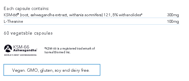 Ashwagandha Matrix provides evidence-based dosages of 600 mg of KSM-66® ashwagandha and 200 mg of L-theanine in just two vegetarian capsules. This simple combination provides optimal relaxation and cognitive support with improved patient compliance. Ashwagandha Matrix can be used to reduce stress and cortisol levels, balance mood, improve memory and cognition, promote sleep, and enhance sexual function in both men and women.
