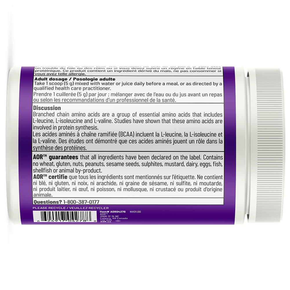 AOR's BCAA formula offers a convenient way to add important branched-chain amino acids to your diet. Unlike other amino acids, BCAAs are broken down primarily in the muscle, specifically within the mitochondria, making them extremely effective at stimulating muscle growth. The BCAA is obtained from a vegetarian source.