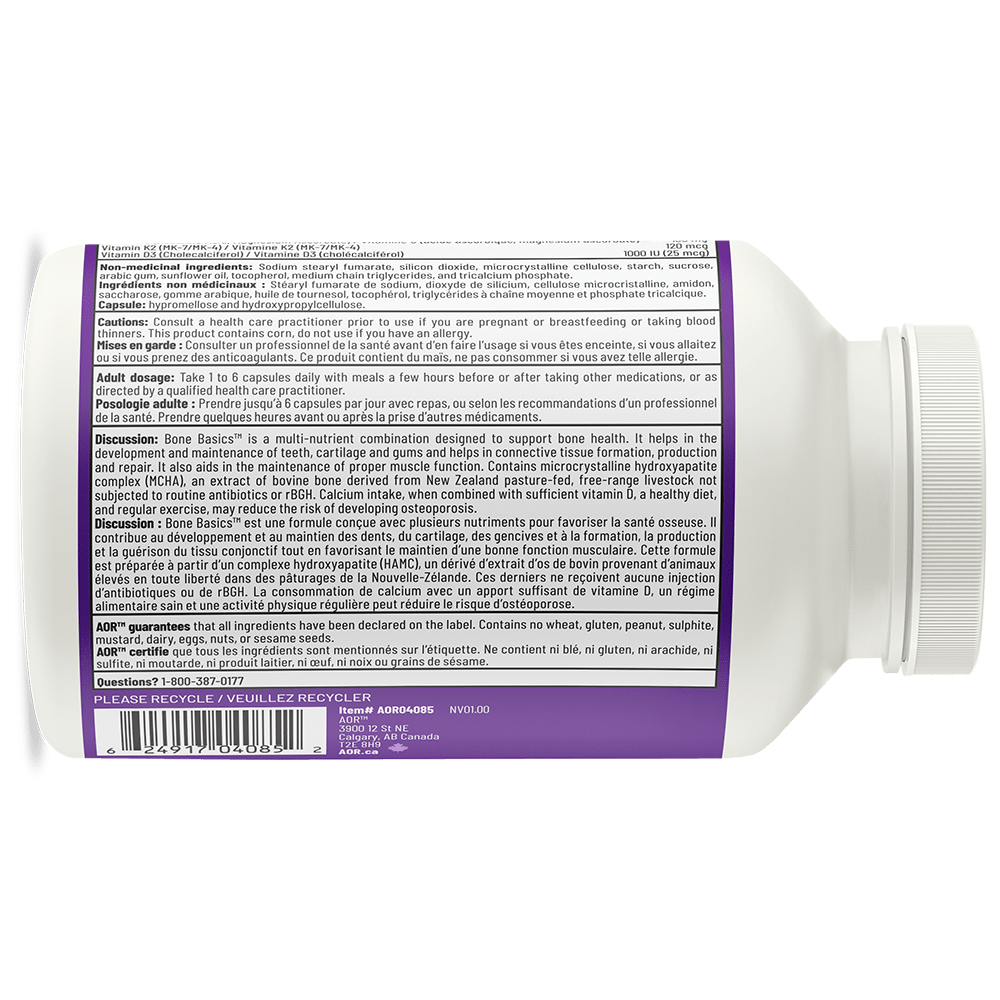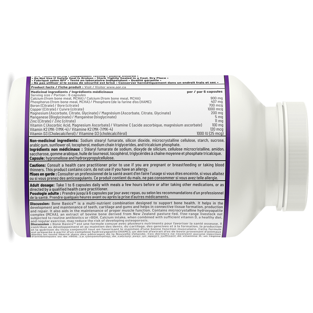 Much more than just a calcium supplement for bone health, Bone Basics is a complete bone-building formula that provides essential nutrients to maintain mineral balance in the bone matrix and support joint health. Bone Basics is unique in that, in addition to helping reduce bone loss, it contributes to the maintenance and even increase of bone growth.