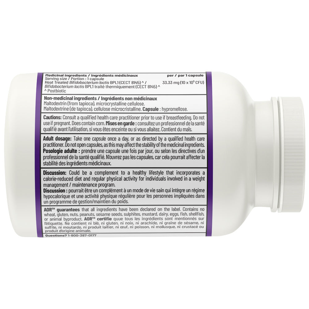 Postbiotic Boost contains heat-treated Bifidobacterium lactis, BPL1®. BPL1® has been shown to promote healthy weight management, demonstrating positive effects on metabolic markers of health, including waist circumference reduction and visceral fat reduction in animal models and human clinical trials. Visceral fat reduction has been associated with reduced cardiovascular risk. BPL1® helps improve satiety while providing powerful antioxidant and anti-inflammatory effects. Those looking to support their weight management efforts alongside a healthy diet and regular exercise may benefit from Postbiotic Boost.