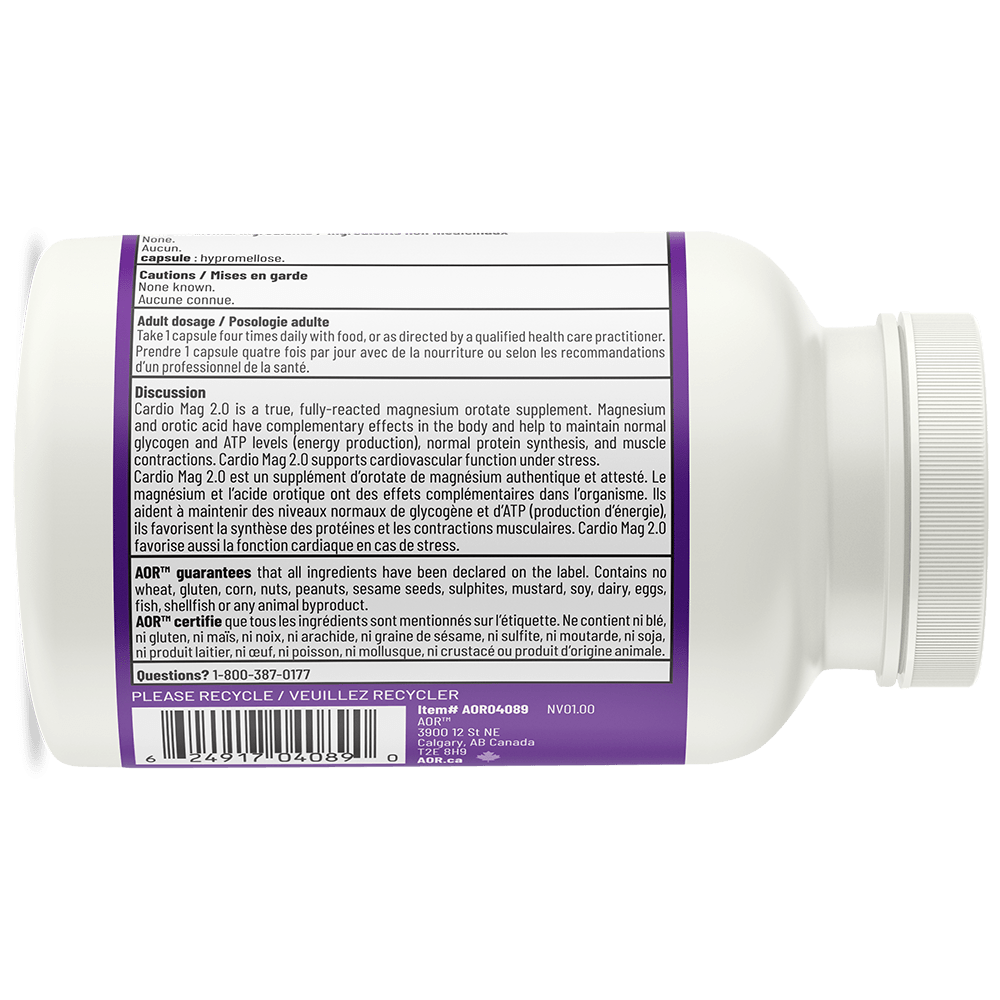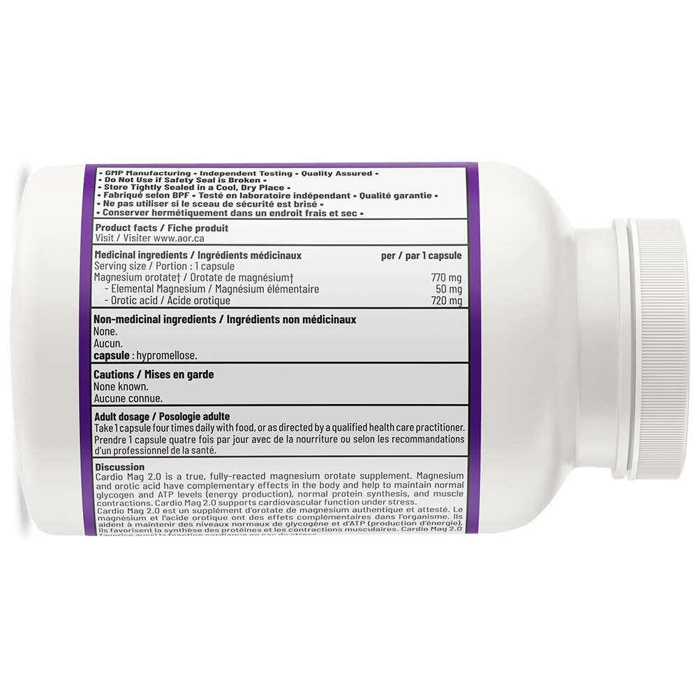 AOR's Cardio Mag 2.0 is designed to support heart health and promote normal blood pressure. It is a 100% pure, fully reacted magnesium orotate supplement. Cardio Mag 2.0 is a heart-specific form of magnesium that has been clinically proven to improve the health of people with heart disease and may be helpful in improving exercise capacity in both heart patients and athletes.