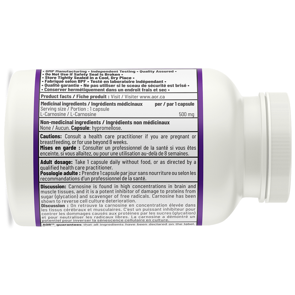 AOR's Carnosine-500 is one of the few stand-alone formulations of this powerful antioxidant available on the market that contains an evidence-based dose.
