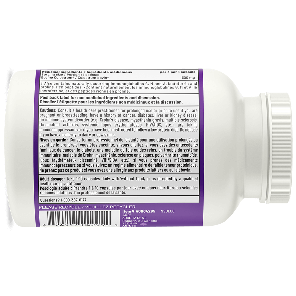 AOR's All-Life Colostrum is sourced from North American cattle raised under the finest conditions and processed under the most stringent quality control to ensure optimum purity and potency. It is processed and packaged within twelve hours of collection from dairy cows. Colostrum obtained from cold climates is of higher quality, since the harsh winter weather causes increased production of factors that support the immune system in cows, compared to colostrum obtained from temperate climates. All-Life Colostrum contains 30% immunoglobulin G (IgG), almost double the amount found in other products on the market. All-Life Colostrum has been purified, but contains trace amounts of lactose; it has been freeze-dried to preserve the biological activity of its specific proteins.