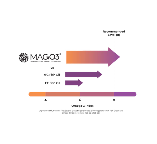 Boost your omega-3s and reach optimal omega-3 levels faster, and with fewer capsules to take! When your body's omega-3 levels are healthy, you benefit from better heart, brain, eye, and joint health. Younited uses only premium MAG-O3™ monoglyceride omega-3s, which have been clinically shown to provide up to 3 times more EPA and DHA than traditional omega-3 supplements in the ethyl ester (EE) form, and up to 2 times more than fish oils in the triglyceride (TG) form.
