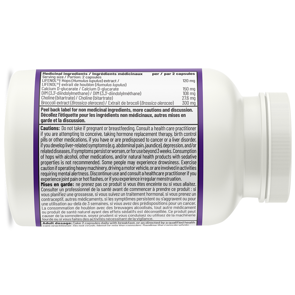 Estro Adapt® reduces the risk of estrogen-related abnormal cell growth through various mechanisms. It prioritizes the synthesis of “good” estrogens over “bad” estrogens through DIM, a metabolite of I-3-C. DIM also promotes normal cervical tissue growth. 8PN is a phytoestrogen found in hops that limits abnormal cell growth in breast tissue and interferes with unwanted estrogenic activity. D-glucarate, choline, and SGS promote the detoxification of excess or inactivated hormones. Estro Adapt® may also promote normal, regular menstruation through its estrogen-modulating effects.
