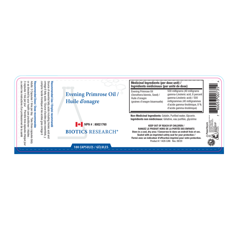 Evening primrose oil is a source of natural gamma-linolenic acid (GLA), the most health-promoting omega-6 fatty acid. GLA plays a key role in regulating the immune system and a natural inflammatory response. * It helps support normal brain growth, development, and function, and is beneficial for stimulating skin and hair growth, maintaining bone health, and regulating metabolism. * GLA also functions as an important component of the reproductive system. *