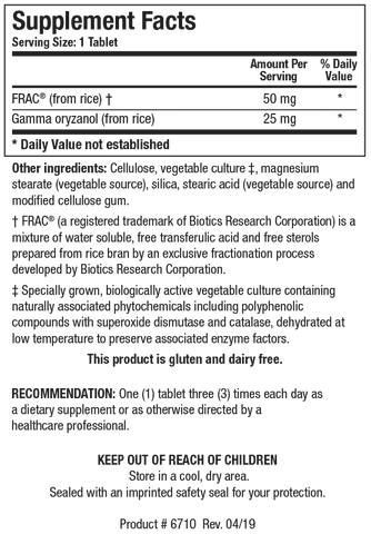 Gammanol Forte provides gamma oryzanol with FRAC®, providing free ferulic acid with a complex blend of polyphenolics, including free sterols and triterpenoids. FRAC® also has significant free radical scavenging properties, similar to those of silymarin, as measured by its ability to quench the organic free radical DPPH (1,1 diphenyl 2-picrylhydrazyl). Several small studies suggest that Gammanol ForteTM may provide nutritional support for the increased synthesis of growth hormone (GH), and possibly endorphins. Athletes, such as football players and weightlifters, have been shown to reduce body fat, increase lean body mass, and increase strength compared to control groups. Gammanol ForteTM includes components that support the autonomic nervous system and its ability to respond to physical stress, particularly anaerobic tasks such as weightlifting. As a result of physical stress, the body releases hormones that play a role in reducing pain (endorphins), reducing inflammation (corticosteroids), and stimulating tissue repair (androgens and growth hormone). Additionally, a small study conducted by Dr. David Brownstein showed that women taking Gammanol ForteTM for five weeks showed an increase in insulin-like growth factor-1 (IGF-1), and by inference GH, which directs the production of IGF-1.