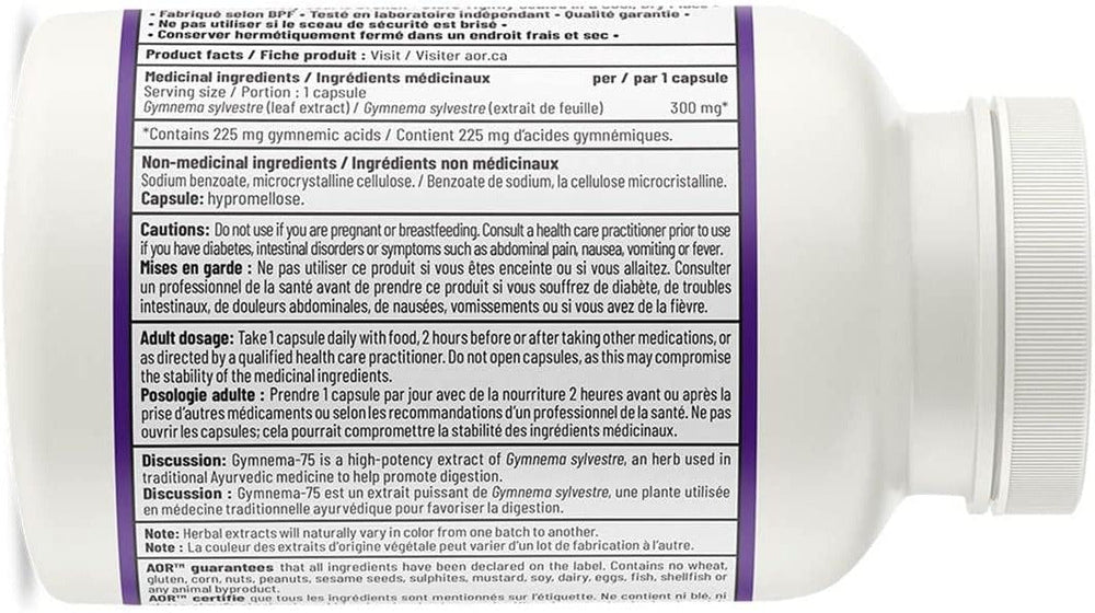 AOR's Gymnema-75 is a high-dose, proven-benefit Gymnema sylvestre extract. Those seeking natural support for blood sugar management and candida control will benefit from supplementing with this ancient Indian herb.
