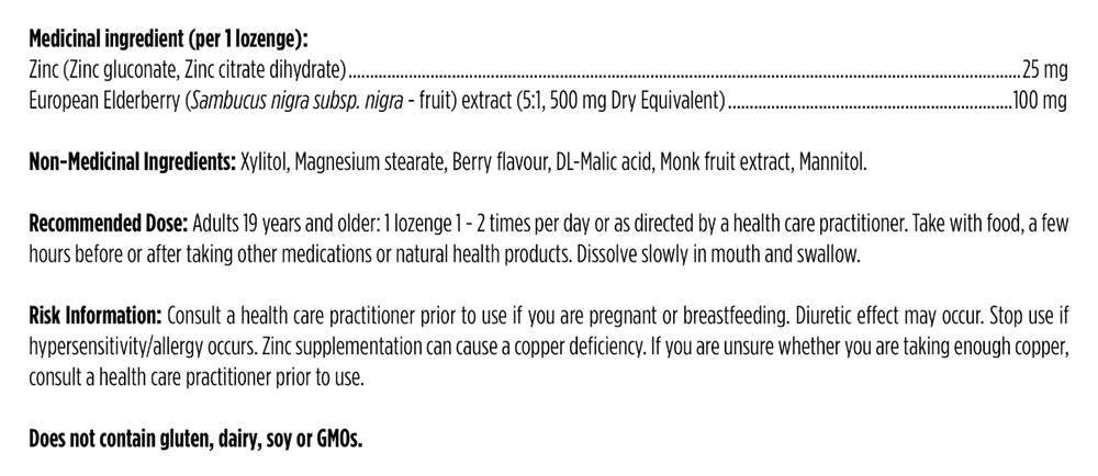 The Immuno-Zn™ lozenge is a combination of zinc and elderberry delivered in a quick-melt lozenge with a delicious mixed berry flavor to support overall immune health. Each lozenge provides 25 mg of zinc (as zinc gluconate combined with zinc citrate) and 100 mg of elderberry fruit (Sambucus nigra), and it contains zero grams of sugar. The lozenge delivery system is ideal for targeted absorption and may help support the health of the upper gastrointestinal tract (i.e., throat) and upper respiratory tract.