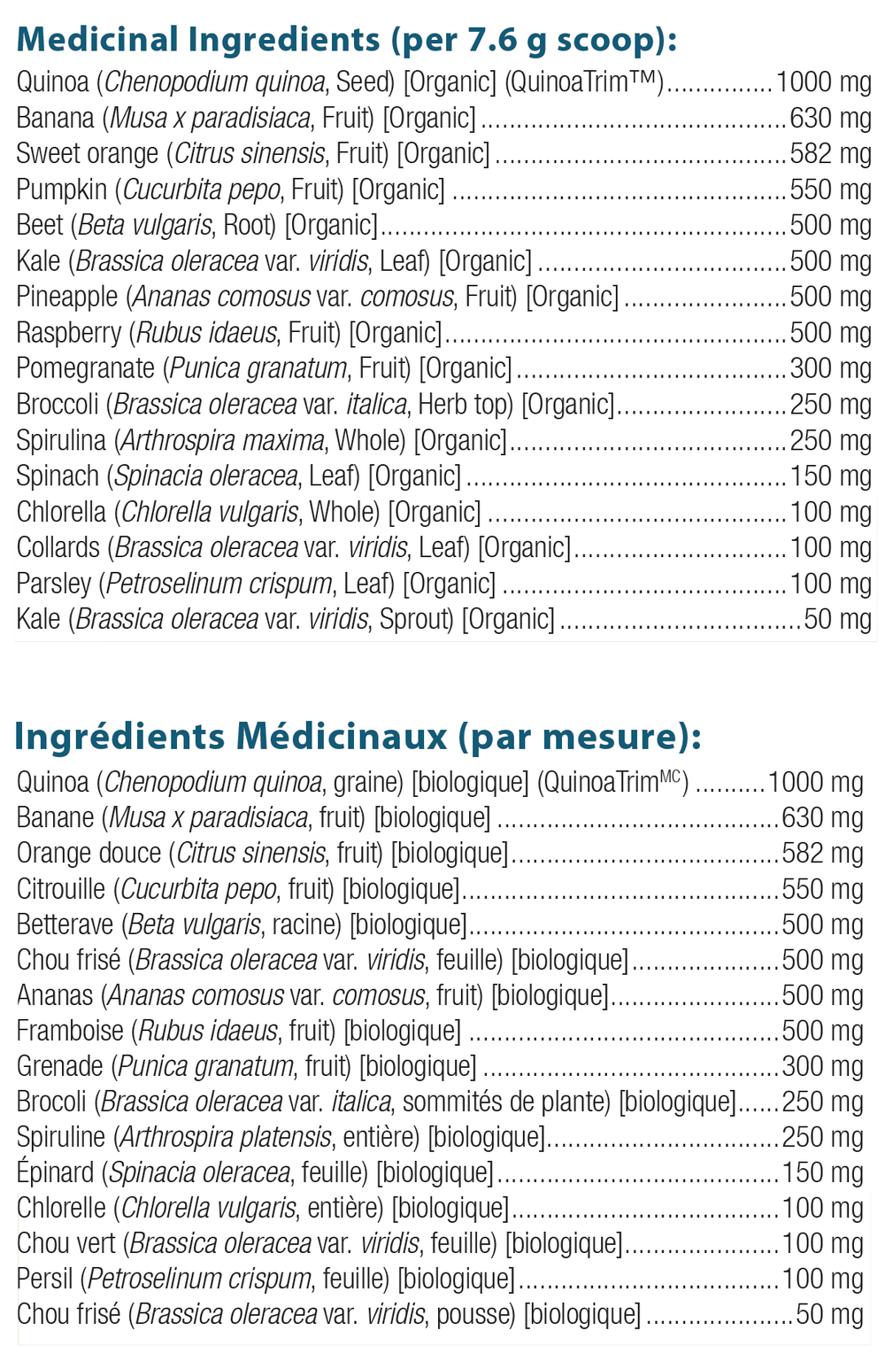 Health Canada recommends the regular consumption of nutritious foods, including fruits and vegetables, which have beneficial effects on health. According to a long-term study of health trends in Canada, vegetable and fruit consumption is steadily declining. Indigo Greens offers a blend of organic fruits and vegetables combined with a wide variety of organic algae powders to help fill the gap in the typical Canadian diet. Indigo Greens can be consumed as a beverage mixed with juice or water, or used in a complete smoothie for an extra boost of phytonutrients from organic fruits and vegetables.