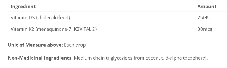 Each dose (4 drops) of Cyto-Matrix K2-D3 Matrix Liquid contains 120 mcg of vitamin K2 in its most active MK-7 form, plus 1000 IU of vitamin D3. Vitamin K2 is found as K2Vital®, the patented, non-soy-derived MK-7. K2-D3 is in a medium-chain triglyceride oil base to promote optimal absorption and bioavailability.