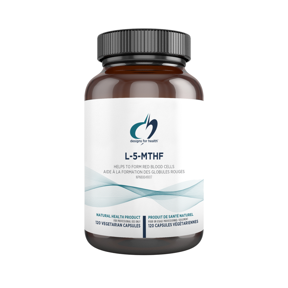 L-5-MTHF provides folate in a bioidentical and bioactive form, 5-methyltetrahydrofolate. L-5-MTHF (the "L" meaning it is the all-natural [6S] isomer) is the active circulating form of folate found in the body and one of several forms found in foods. In nature, it is found only as this [6S] isomer; therefore, DFH provides 5-MTHF in this natural form rather than in the mixed (or racemic) form. L-5-MTHF was designed for patients who have demonstrated an increased need for folate, such as those with the A1298C or C677T MTHFR mutations.