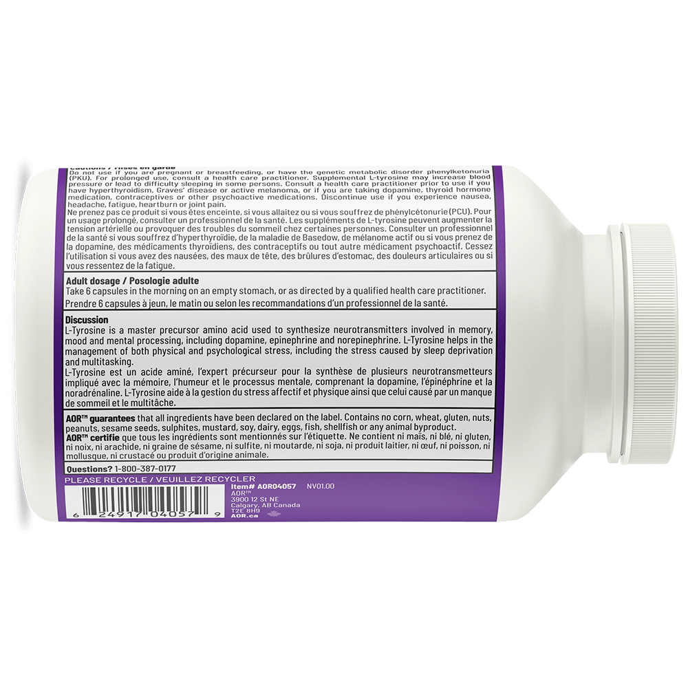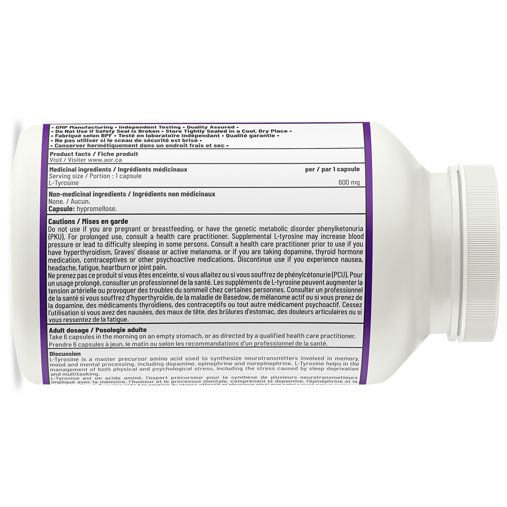 AOR's L-Tyrosine provides a safe and effective dose of pure, high-quality L-tyrosine.