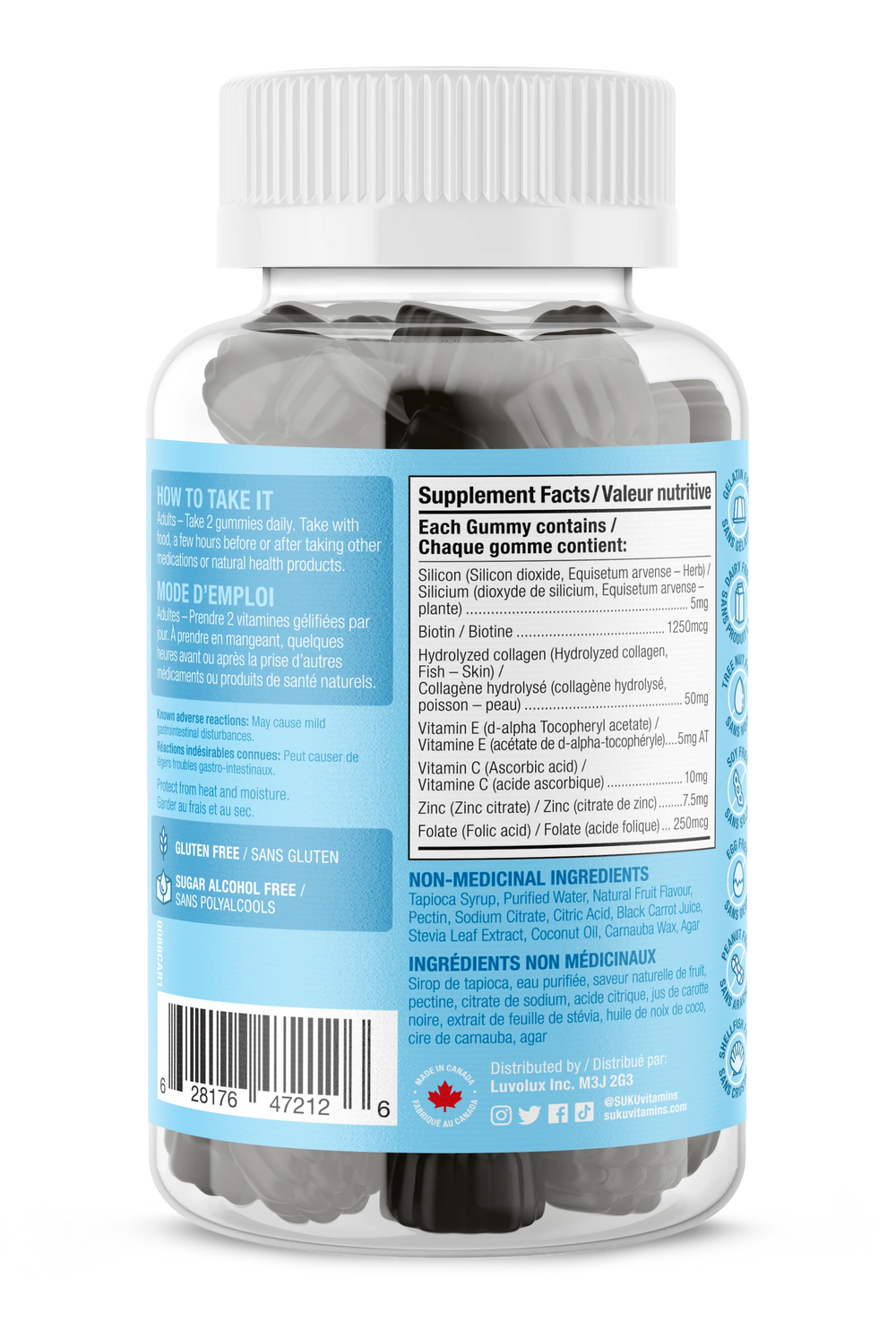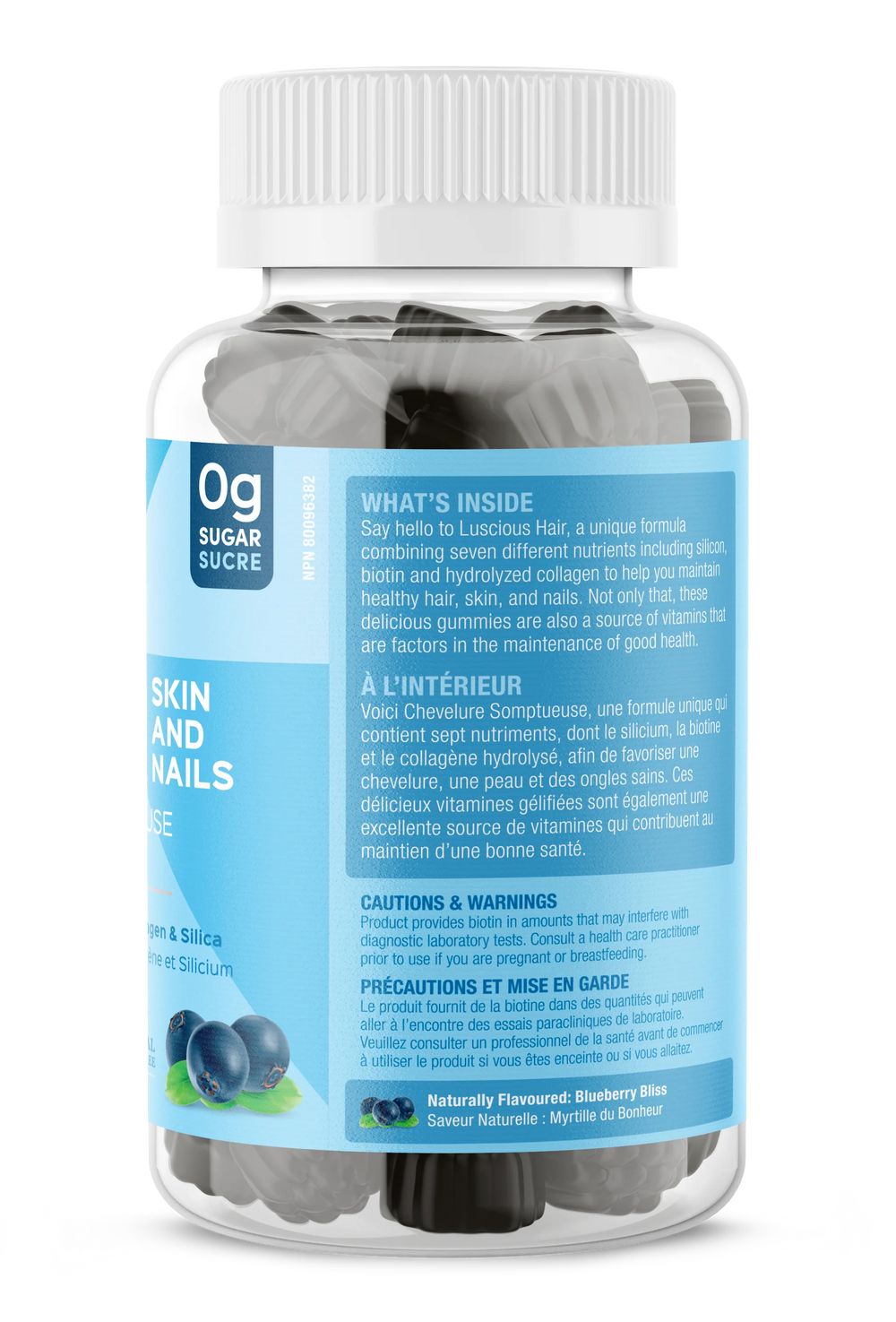 Say hello to Luscious Hair, a unique formula combining seven different nutrients, including silicon, biotin, and hydrolyzed marine collagen, to help you maintain healthy hair, skin, and nails. Plus, these delicious sugar-free gummies are also a source of vitamins and minerals that contribute to the maintenance of good health.
