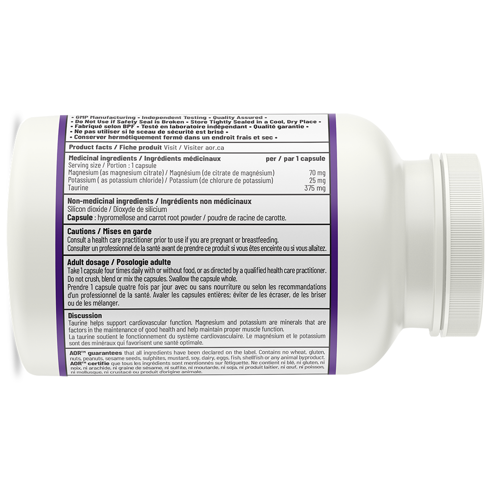 AOR's Mag-K-Taurine is a sugar-free electrolyte formula that complements most electrolyte supplements. This product provides an important balance of magnesium and potassium for proper nerve and muscle contractility, as well as taurine for maintaining heart function.