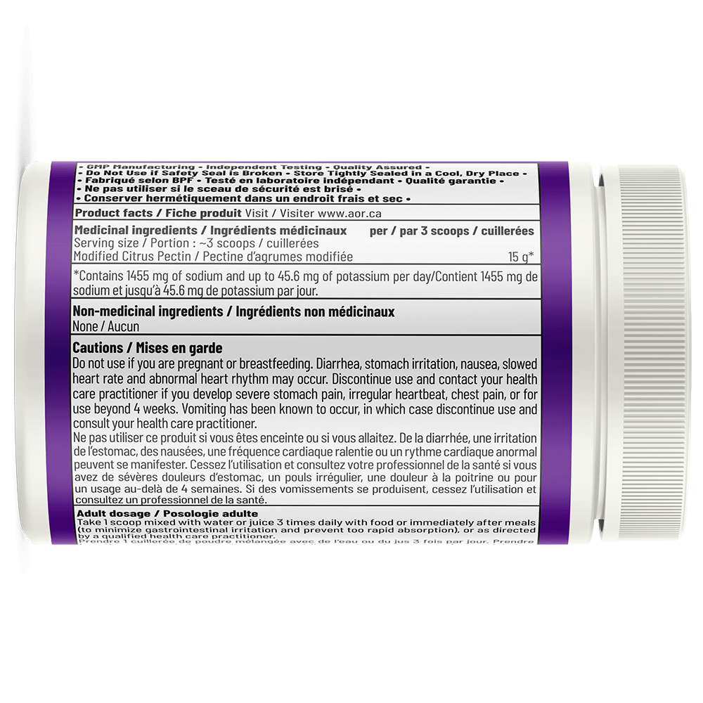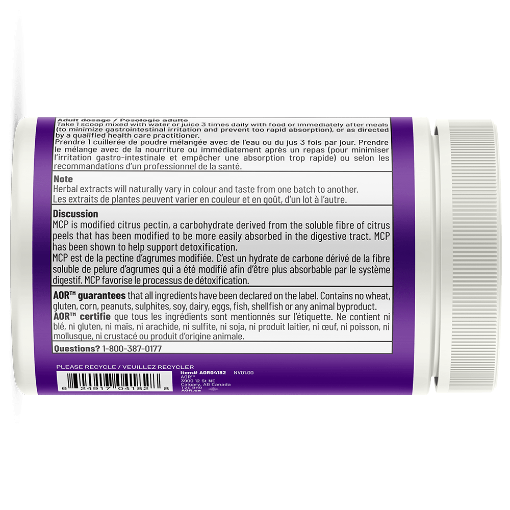 Modified citrus pectin (MAP) is a carbohydrate derived from the soluble fiber in citrus peels that has been broken down into smaller fragments for easier absorption in the digestive tract. AOR's MAP is refined to match the specific size and weight of the pectin used in the studies.
