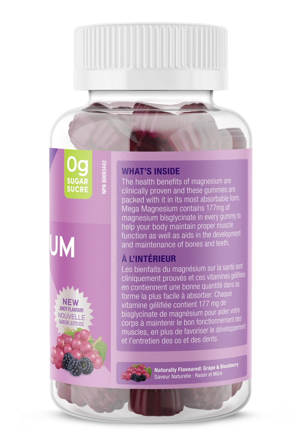The health benefits of magnesium are clinically proven, and these sugar-free gummies contain it in its most absorbable, effective, and fastest-acting form. Mega Magnesium contains 177 mg of magnesium bisglycinate in each gummy to help your body maintain proper muscle function and aid in the development and preservation of bones and teeth. These gummies can also quickly and effectively relieve many symptoms associated with magnesium deficiency.