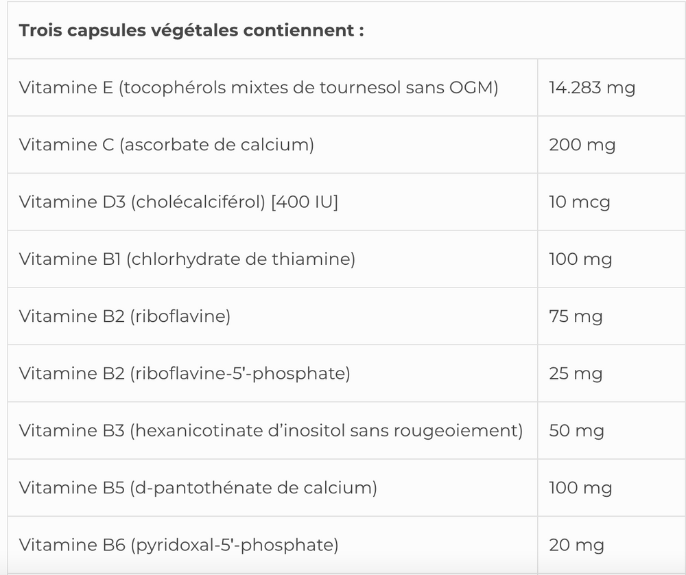 A daily multivitamin/micronutrient supplement therefore ensures an adequate intake of several nutrients that may be lacking in processed, cooked, denatured or over-exploited foods in the current diet.