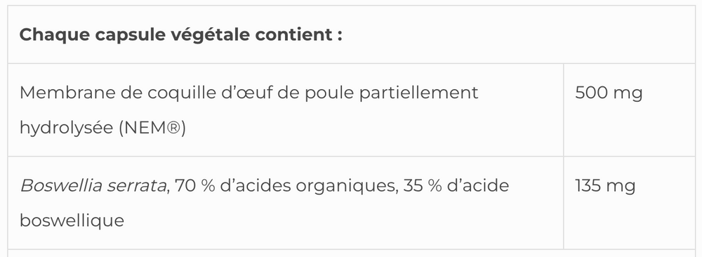 NEM® SAP combines NEM® with the botanical Boswellia serrata (frankincense) to optimize its positive effects on reducing pain and inflammation.