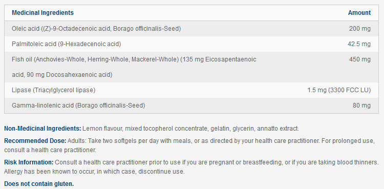 This unique and synergistic formula provides not only the beneficial omega-3s eicosapentaenoic acid (EPA) and docosahexaenoic acid (DHA) from fish oils, but also a blend of other FAs, including gamma-linolenic acid (GLA) from borage seed oil, palmitoleic acid (PA) and oleic acid (OA) from organic virgin macadamia nut oil and borage oil, providing a spectrum and balance of high-quality, health-promoting fatty acids.
