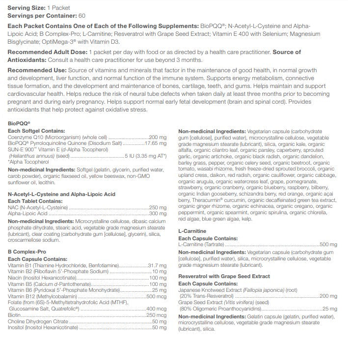 Opti Ova is a comprehensive female reproductive support kit that provides an effective combination of key antioxidants, omega-3 fatty acids, vitamins, and minerals that have been shown to improve egg quality and enhance fertility. By optimizing mitochondrial function, reducing oxidative stress, promoting blood flow to the endometrium and its development, and improving detoxification pathways, Opti Ova provides a broad base of nutritional support for reproductive health.