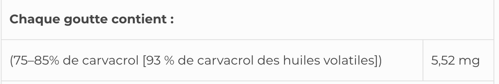 Oregano oil extract has demonstrated antioxidant, antimicrobial, and antiviral properties. Carvacrol is one of nature's most powerful antimicrobials, with beneficial effects against several strains of Gram-positive and negative bacteria and several species of fungi and yeasts.