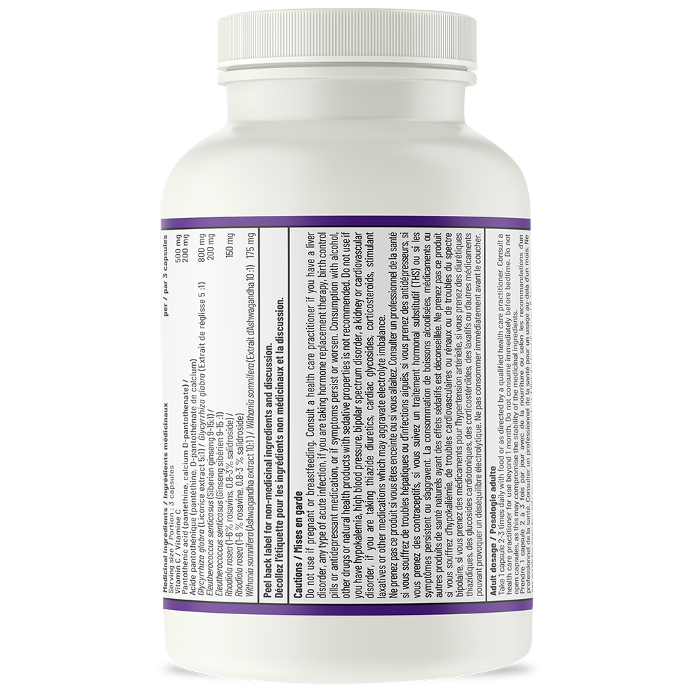 Ortho Adapt Vegan was designed to help the body effectively manage stress by stimulating the adrenal glands and helping prevent adrenal insufficiency. Adaptogens are substances that support the body during times of stress. They activate the body's nonspecific defenses, redirecting the body's resources to provide the energy needed to actively engage with any stressor, whether physical, emotional, or environmental. Ortho Adapt Vegan provides ashwagandha, Rhodiola rosea, licorice, and Siberian ginseng—four effective adaptogenic herbs supported by clinical study data. This product also contains vitamins C and B5, which are quickly depleted during times of stress and are needed by the adrenal glands to manufacture stress hormones. All of these factors help prevent fatigue and burnout, increase energy levels, and promote the ability to cope.