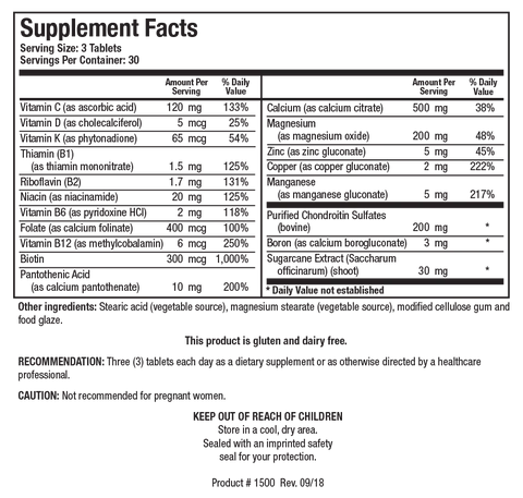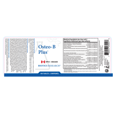 Although the importance of calcium is well known, the evidence clearly supports the view that multiple nutrients are essential to nourish the skeletal system. Osteo-B Plus provides these essential nutrients along with important synergists. Bone is a dynamic tissue that requires adequate nutrition for maintenance and growth. Due to the balance between bone building, performed by osteoblasts, and bone dissolution, performed by osteoclasts, bone growth and maintenance have distinct nutritional requirements. Adequate calcium and vitamin D intake throughout life is linked to a reduced risk of osteoporosis through the mechanism of optimizing peak bone mass in adolescence and early adulthood, or slowing the rate of bone loss in those with a family history of the disease, postmenopausal women, and