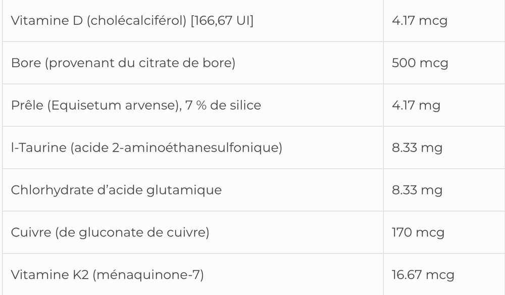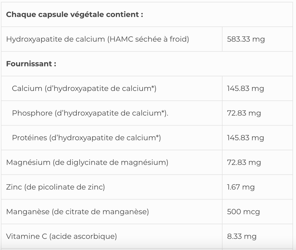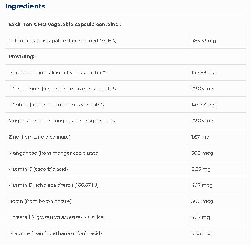 Copper, manganese, and zinc are an essential trio in bone metabolism as cofactors for specific enzymes. Calcium, magnesium, phosphorus, trace elements, and protein are components of bone tissue and are all found in microcrystalline hydroxyapatite (MCHA) in their natural proportions.