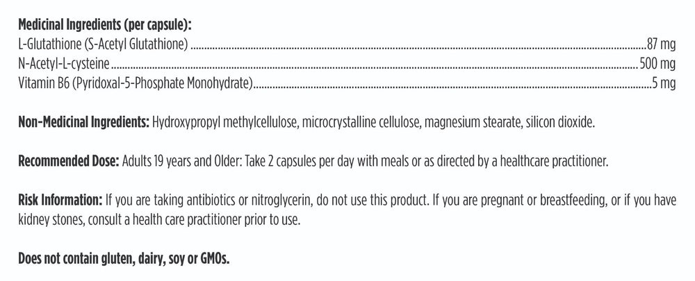 S-Acetyl Glutathione Synergy (SA-GSH) is a unique form of glutathione, one of the most powerful antioxidants naturally produced by the body. An acetyl group (COCH3) is attached to the sulfur atom of cysteine in the glutathione molecule. SA-GSH is well-suited for oral ingestion because this acetyl group protects glutathione from degradation in the gastrointestinal tract. Once absorbed and inside the cells, it is eliminated, leaving the glutathione molecule intact. SA-GSH helps support immune function and optimize glutathione-dependent liver detoxification pathways. It is the ideal choice when higher doses of glutathione are recommended. This product also contains N-acetyl-L-cysteine (NAC) and vitamin B6, both important for glutathione production.