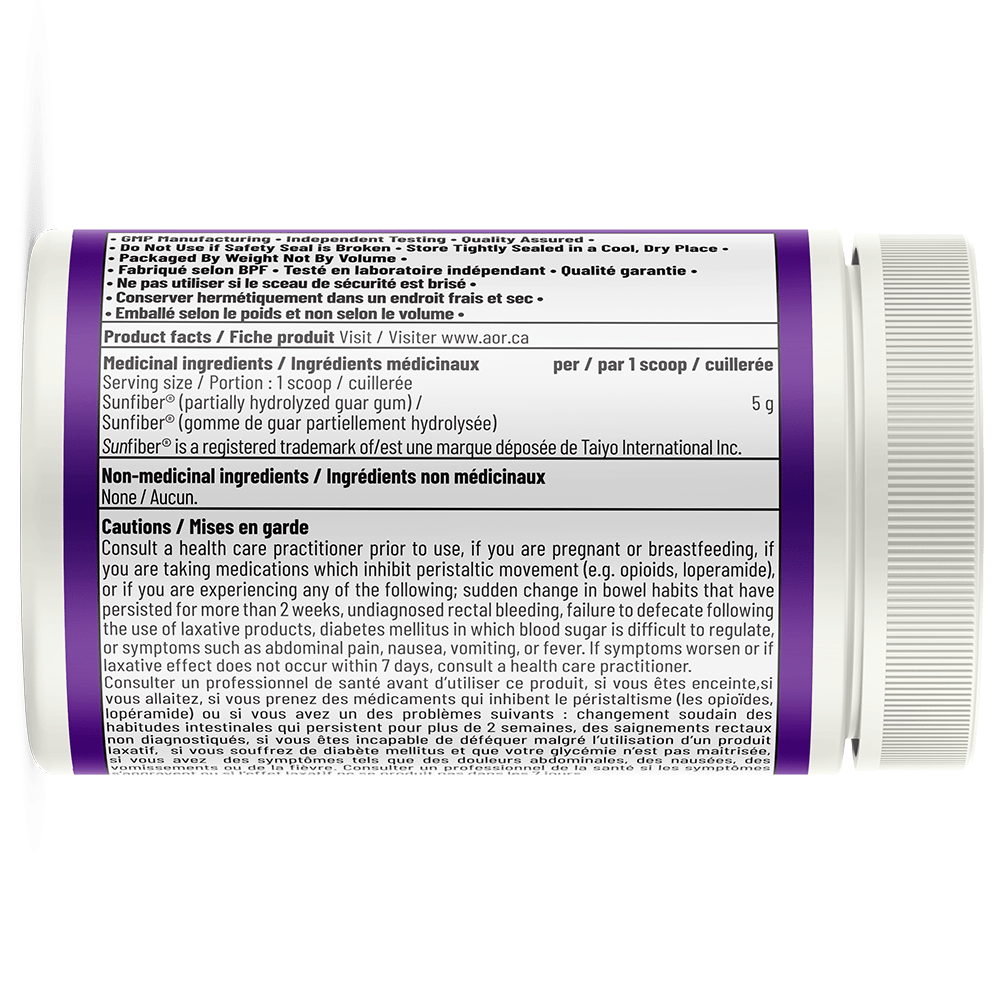 Fiber supplementation has been shown to be more effective than fiber from food. AOR's SoluFibre contains partially hydrolyzed guar gum, a highly soluble prebiotic form of fiber derived from the endosperm of the grape cluster. Guar gum ferments more slowly in the intestinal tract than some other prebiotic fibers, making it easily tolerated. Hydrolysis is a controlled, natural process that breaks guar gum down into smaller units, significantly reducing its viscosity and allowing the particles to dissolve more easily, while maintaining the original fiber content. It is a patented form of highly soluble fiber that has been clinically tested and studied in children.