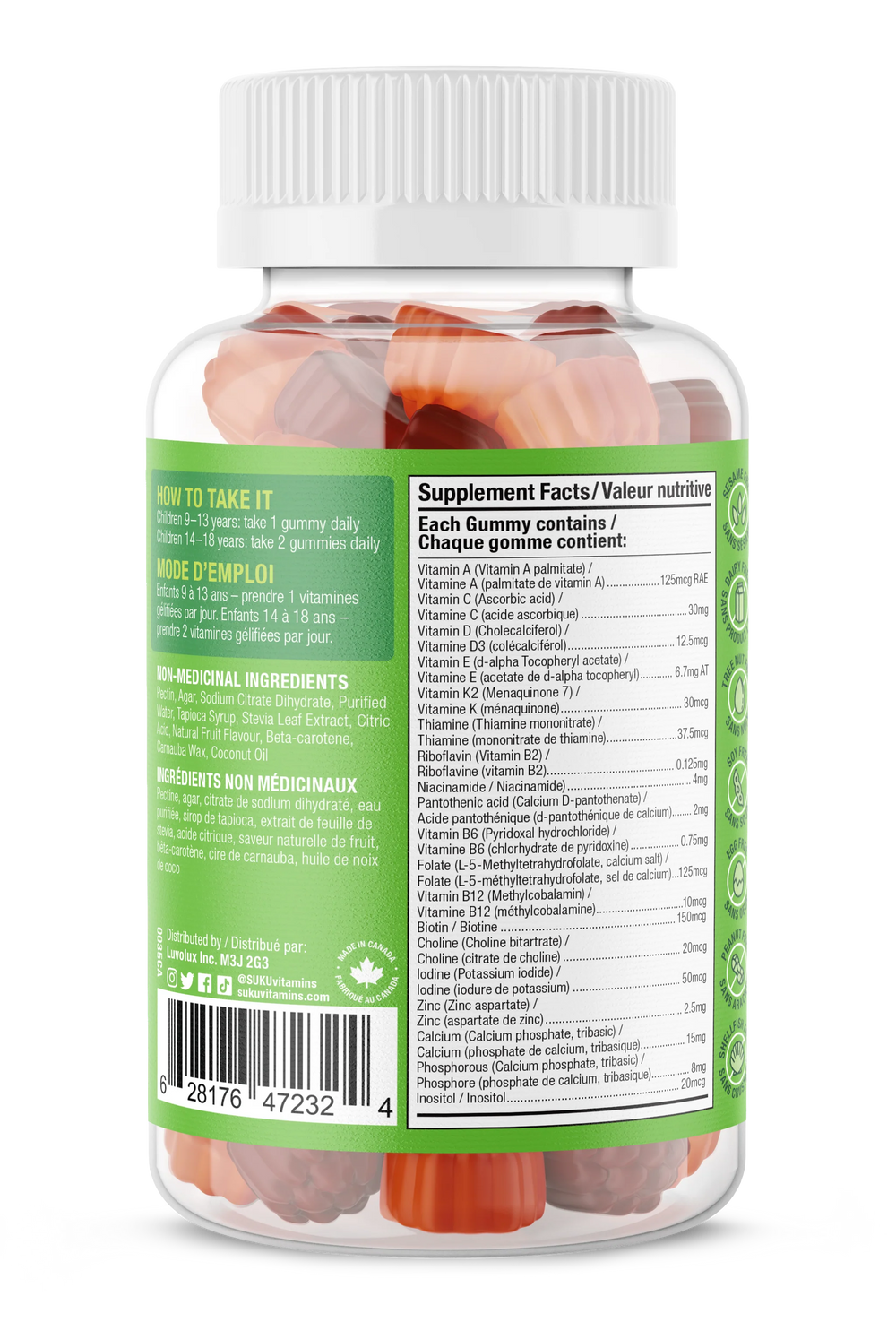 These gummies contain a powerful blend of 19 essential vitamins and minerals, including vitamin B12, vitamin C, and calcium, to help nourish from the inside out. Just one serving is enough to support the development of bones, teeth, and connective tissue and contribute to the maintenance of good health. Both gummies also contain 3g of soluble dietary fiber.