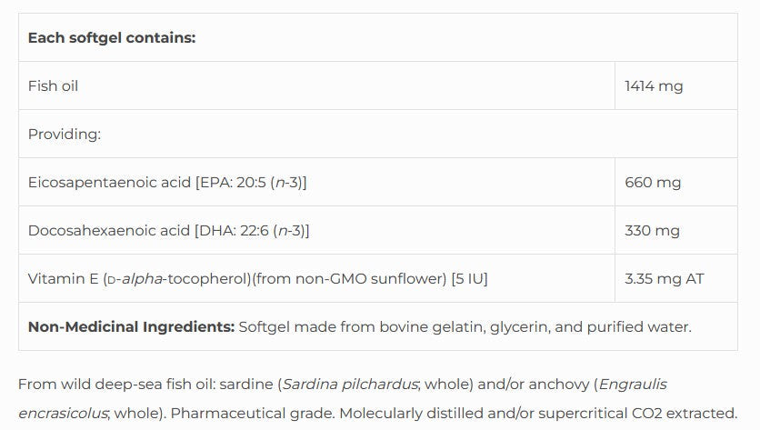 Trident SAP 66:33 Lemon Flavor is an exceptionally pure fish oil, standardized to the highest concentration. Each softgel provides 990 mg of EPA and DHA in a 2:1 ratio. Omega-3 EPA and DHA support cardiovascular health by promoting healthy triglyceride levels, support joint tissue health by supporting a healthy inflammatory response, and support optimal cognitive health and brain function.