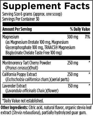 TriMag Night is a unique blend of three highly absorbable forms of magnesium along with relaxation-supporting botanicals to help provide restful sleep. One serving provides 300 mg of elemental magnesium in an easy-to-mix powder. This product contains botanicals that may support a healthy stress response and help support sleep quality and duration. *TriMag Night has a delicious lavender-lemon flavor and is sweetened with stevia.