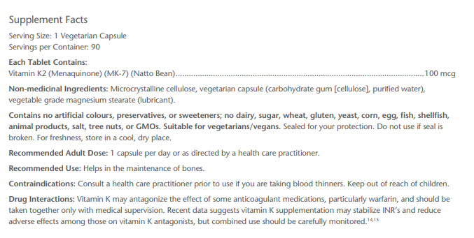 Clinically, lower vitamin K intake has been linked to a higher risk of myocardial infarction and stroke, plaque instability, and, more recently, diabetes. Higher vitamin K intake, particularly K2, has been associated with lower all-cause mortality, coronary heart disease, aortic calcification, and cancer incidence and mortality. Higher intake of MK-7, which has the longest half-life and the greatest extrahepatic distribution, has been associated with a lower fracture risk and higher BMD.