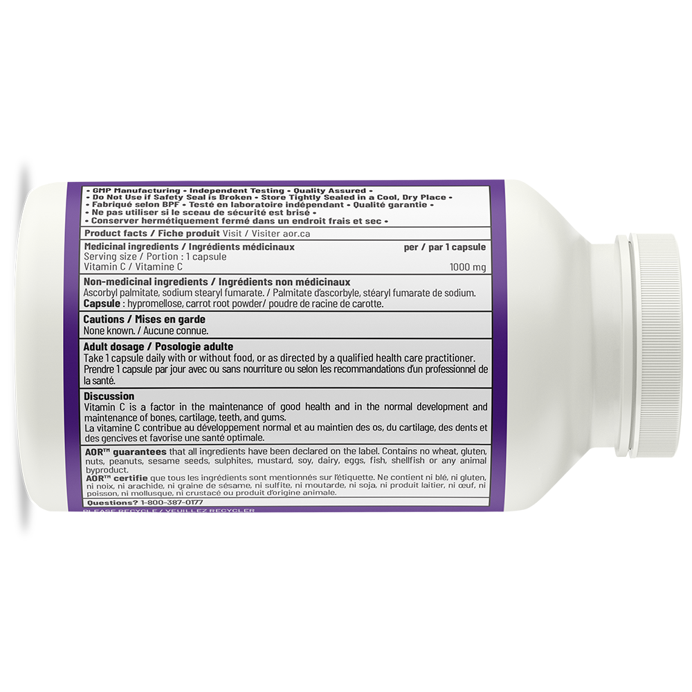 AOR Vitamin C is a high-dose, pure ascorbic acid that can benefit everyone, especially those with a family history of cardiovascular disease, seasonal allergies, a weak immune system, or who do not regularly consume citrus fruits or other vitamin C-rich foods.
