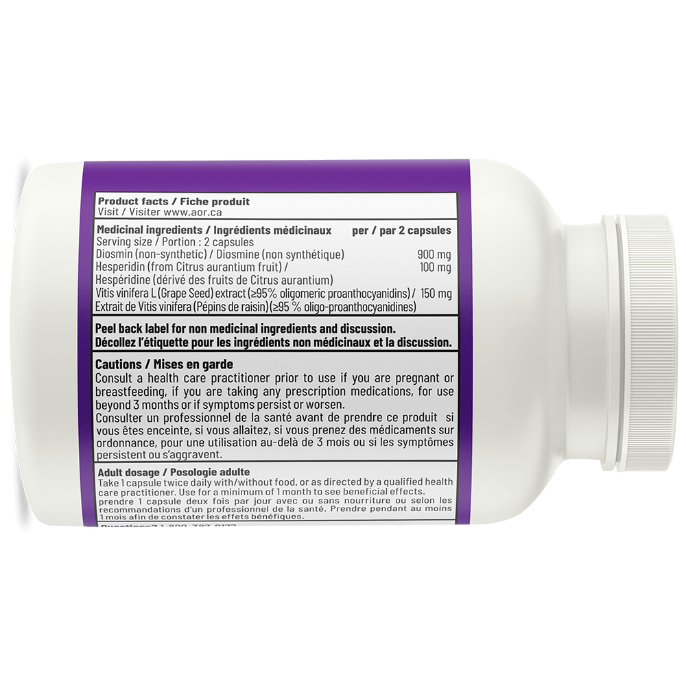 AOR's ViviVeine is unique in that it contains a clinically tested combination and proportions of diosmin and hesperidin, and grape seed extract traditionally used in herbal medicine to treat CVI. ViviVeine is formulated with 100% natural ingredients.