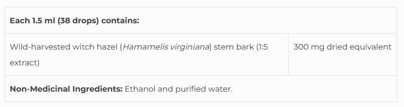 In addition to its tannin content, witch hazel contains proanthocyanidins, resins, flavonoids, and small amounts of volatile oils.