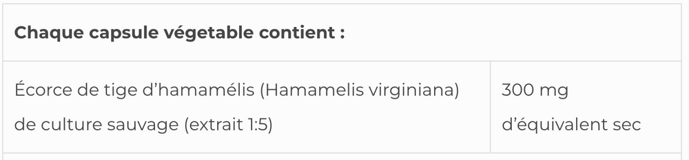 Many of witch hazel's therapeutic properties can be attributed to its high tannin content, which is 31 times more abundant in the bark than in the leaf extract. The tannins in witch hazel are in the form of hamamelitannin, which gives the plant its astringent properties, allowing it to dry, tighten, and harden tissues.