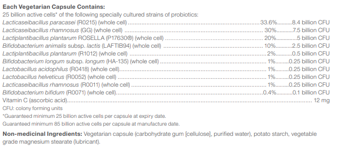 Nearly 90% of the CFUs in Women's Health Probiotic are lactobacilli, including species that populate the vaginal flora after oral supplementation. For example, oral supplementation with L. plantarum P17630 has been shown to promote the vaginal growth of lactic acid-producing bacteria and inhibit Candida spp. proliferation in women with recurrent vulvovaginal candidiasis. Similarly, vaginal growth of L. paracasei, rhamnosus, and acidophilus, as well as Bifidobacterium animalis subsp. lactis, has been shown to increase after oral supplementation, providing protection against dysbiosis and vaginal infections.