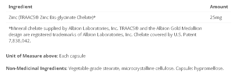 Cyto-matrix Zinc Bis-Glycinate provides 25 mg of elemental zinc in a fully chelated bis-glycinate form for optimal absorption and tolerability, with minimal risk of nausea, even in the most sensitive patients.
