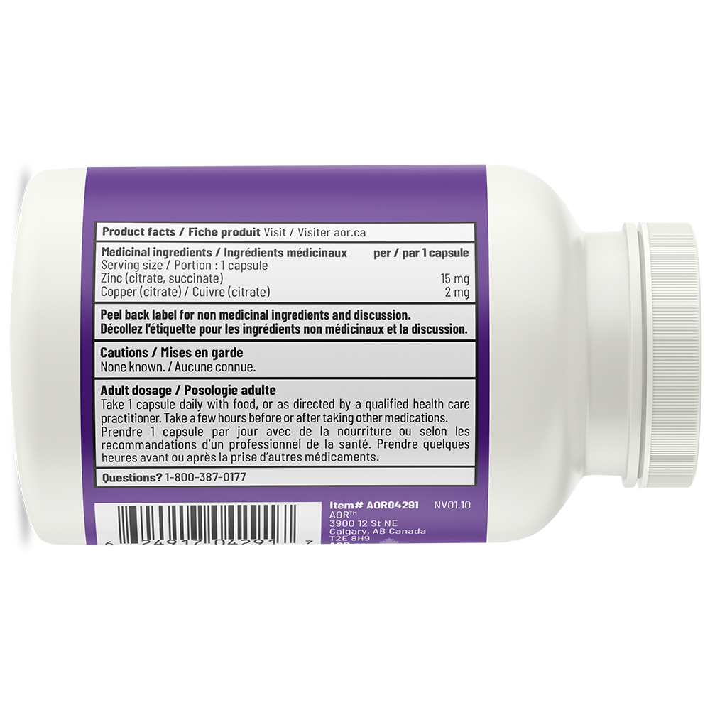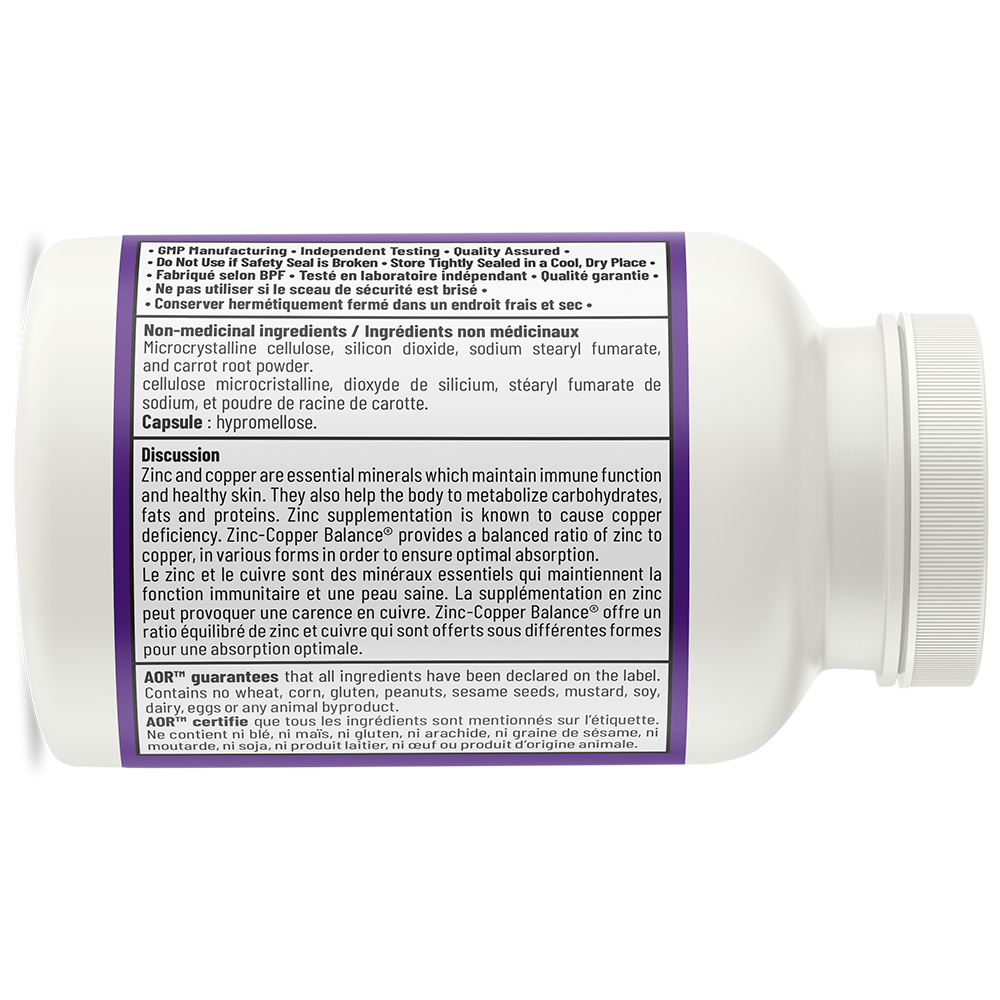 Although the importance of zinc is increasingly recognized, the crucial role of copper in our health has often been overlooked. Excessive zinc supplementation alone can lead to copper deficiency, which can have serious consequences for your long-term health. Zinc-Copper Balance is the best choice for anyone taking a zinc supplement or looking for a balanced and varied formula containing these two essential minerals. AOR's Zinc-Copper Balance provides a balanced, research-based zinc-to-copper ratio, each in different forms to ensure optimal absorption and function.
