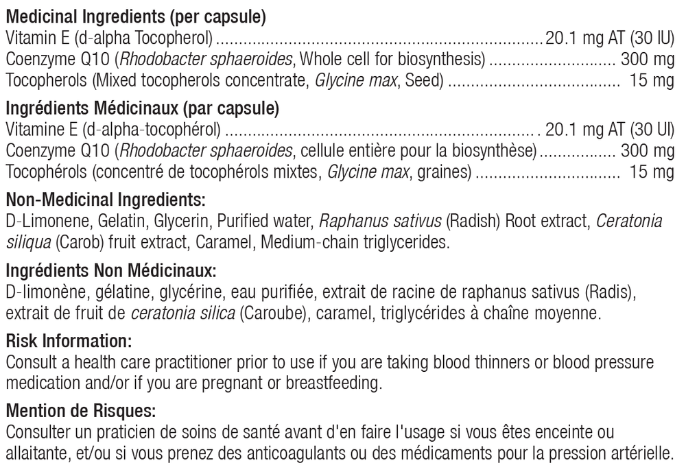 La CoQ-10 joue un rôle essentiel dans la production d'énergie (ATP) et agit comme antioxydant pour le maintien d'une bonne santé. CoQ-10 300 mg est délivré dans une formulation exclusive à base d'huile avec de la vitamine E naturelle pour une meilleure absorption et une stabilité maximale.