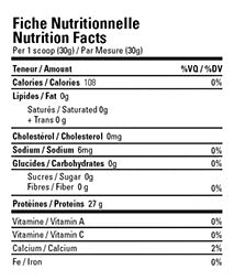 La protéine G27 ISO favorise la prise de masse musculaire sèche et fournit à votre corps les nutriments nécessaires après un entraînement. Elle contient 27 grammes de protéines par portion et est offerte en trois saveurs différentes : chocolat, vanille et biscuits à la crème.