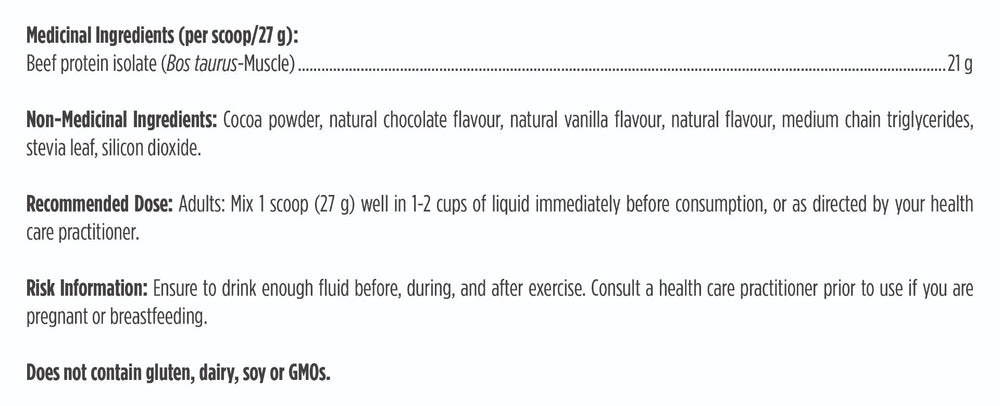 Une poudre protéinée complète contenant des protéines de bœuf provenant d'HydroBEEF™, qui offre 21 g de protéines complètes par portion pour soutenir la masse musculaire maigre et une composition corporelle saine.