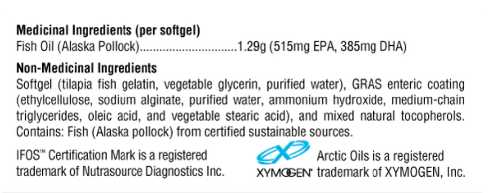 Chaque dose de cette huile de poisson concentrée fournit 900 mg d'EPA et de DHA et est délivrée dans une petite gélule à base de gélatine de poisson. Les gélules sont recouvertes d'un enrobage entérique certifié GRAS, ce qui facilite leur ingestion et permet une absorption optimale de la teneur en EPA / DHA.